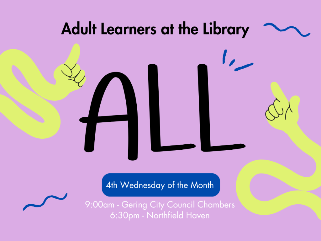 Adult Learners at the Library (ALL) is designed especially for adults with intellectual and developmental disabilities to gather, socialize and enjoy learning experiences.