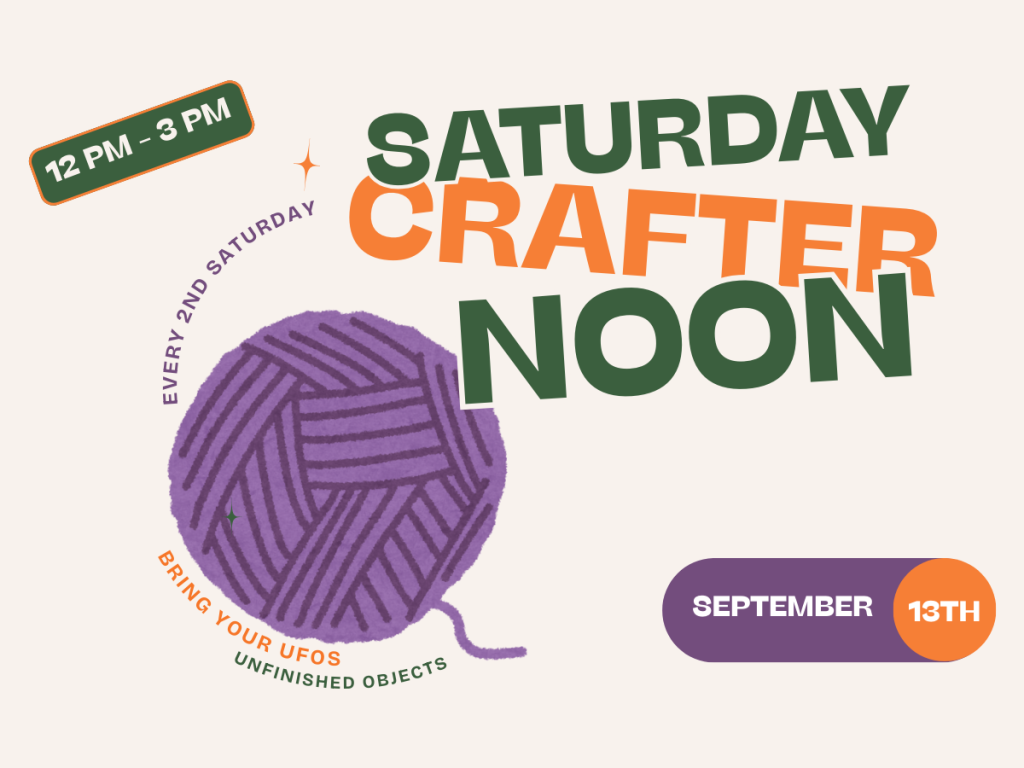 Whether you have a project you are working on and just want to some camaraderie while you work or are looking for a new project, whether you are an experienced crafter or have done very little, you are welcome to join us on the 2nd Saturday of each month for our Saturday Crafternoon.